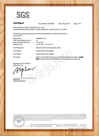 生產(chǎn)粘塵布所用的配方符合SGS標(biāo)準(zhǔn); 產(chǎn)品通過VOC排放檢測,未檢測到苯有害物質(zhì)等